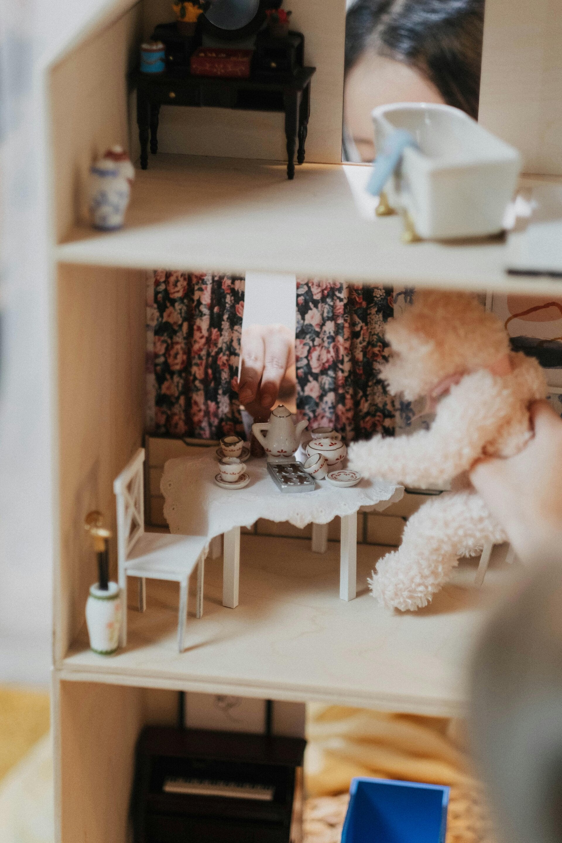 We pour our creativity into each upcycled dollhouse, transforming it into a unique piece. Our passion is to revitalise these miniature homes, making them special treasures for children, avid collectors, and anyone looking for a distinctive decorative item. Each dollhouse is a one-of-a-kind creation, brimming with character and charm.